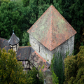 - Obergeschoss. Der Turmabschluss mit dem Zeltdach existiert erst seit 1908. Die Burgkapelle und der Pallas mit der Durchfahrt schließen sich an den Bergfried an. Die Durchfahrt wurde erst später überwölbt.